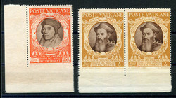 1946, 50 C. und 5 L. Tridentinisches Konzil, 3 postfrische Werte vom rechten Bogenrand, rechts ungezähnt, dabei der Wert zu 50 C. im waager. Paar und der Wert zu 5 L. in einer Bogenecke von oben rechts (Seitenrand fleckig) und einem waager. Paar, der linke Wert des Paares mit Gummifehler, sonst einwandfrei, Sassone ca. 400,- EuroFixed Price