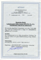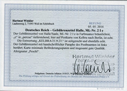 1923, OPD HALLE, Gebührenzettel mit einreihigem Zierrahmen bräunlichrot, 8-Punkt-Schrift und größeres c, auf Postkarte nach Wernigerode, Stempel "OSTERFELD 10.9.23", Karte mit kleiner Fehlstelle, sonst saubere Bedarfsqualität, geprüft Infla und Fotoattest Bechtold BPP (ME -,-)Fixed Price