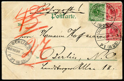 1885, Drucksachenkarte Central-Verein Arbeit-Nachweis mit 3 Pfg. ab Hostermaschinenstempel Berlin C2 7.12.85 - Eckziffer 27/2. Text: zur Besetzung des Vacanz, unseren humanitären Bestrebungen gewidmeten Verein. Arbeitskräfte werden durch unsere Beamten controlliert... Karte mit Riss, unverklebt.Fixed Price