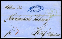 1872, 1 Gr. karmin u. 2 Gr. ultramarin, großer Schild auf Paketbegleitbrief mit Ra. "BERLIN P.A. No 11 ANHALTER BAHNHOF 17.7.72", mit Paketaufkleber nach Frankfurt/O., seltener violetter Packkammerstempel, Marken an den Rand geklebt (je eine Seite überstehend), dekorativer Bedarfsbrief, geprüft Hennies BPP und Befund Sommer BPPFixed Price