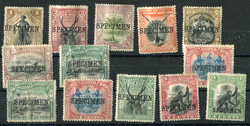 1895, 2 C. bis 24 C., die Ausgabe aus 1895 mit Aufdruck "POSTAGE DUE", ungebraucht, je mit zusätzlichem Aufdruck "SPECIMEN", hierbei der Wert zu 18 C. mit senkr. Aufdruck "POSTAGE DUE", aus dem belgischen Postarchiv, übliche etwas mangelhafte Zähnung, sonst einwandfreiFixed Price