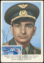 1981, SOWJETUNION, SALJUT 6, Ganzsachenumschlag vom Sternenstädtchen 12.4.81, dem 20. Jahrestag des 1. Raumfluges von Juri Gagarin, befördert mit Sojus 40 am 15.5. zur Raumstation Saljut 6, offizieller Bordpoststempel Saljut 6 und Erinnerungsstempel der Kosmonauten W. Kowaljonok und V. Sawinych, die den Beleg auch unterschrieben haben, dazu Kopie "Certificate of Authenticity"Fixed Price