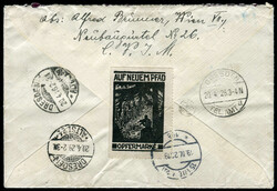 1924, Eingehende Post, frankierter Brief aus Rumänien (Mi-Nr. 270, 273(2)), aufgegeben in "NEDIAS ...24", adressiert nach Wien/postlagernd, vorderseitig frankiert mit 200 Kr. mattrötlichkarmin als Lagergebühr, seltene Verwendungsform, saubere QualitätFixed Price